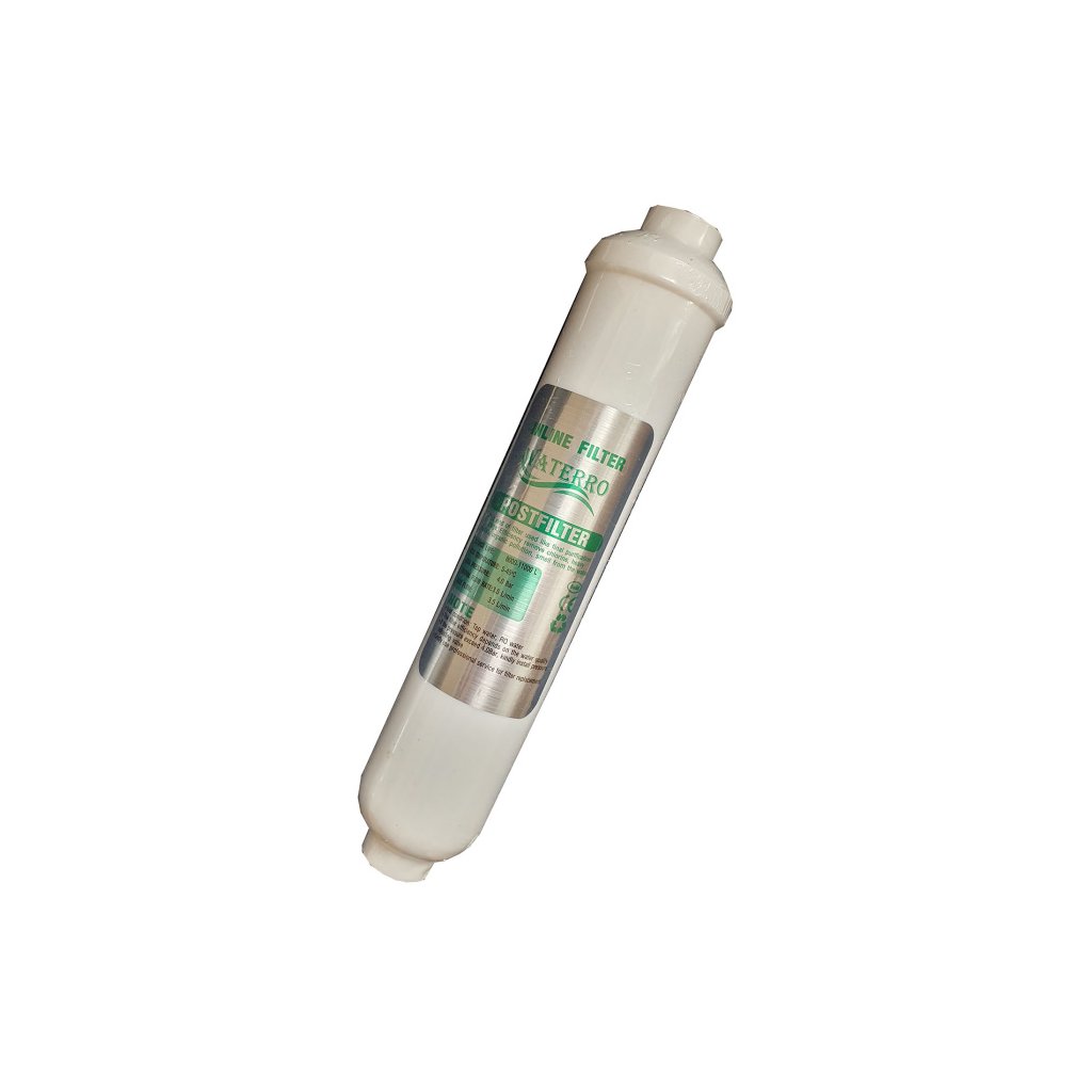 Filtr s aktivním uhlím z kokosových vláken, koncová filtrace k reverzní osmóze, používá se i u moderních lednic s výdejníkem vody nebo ledu.