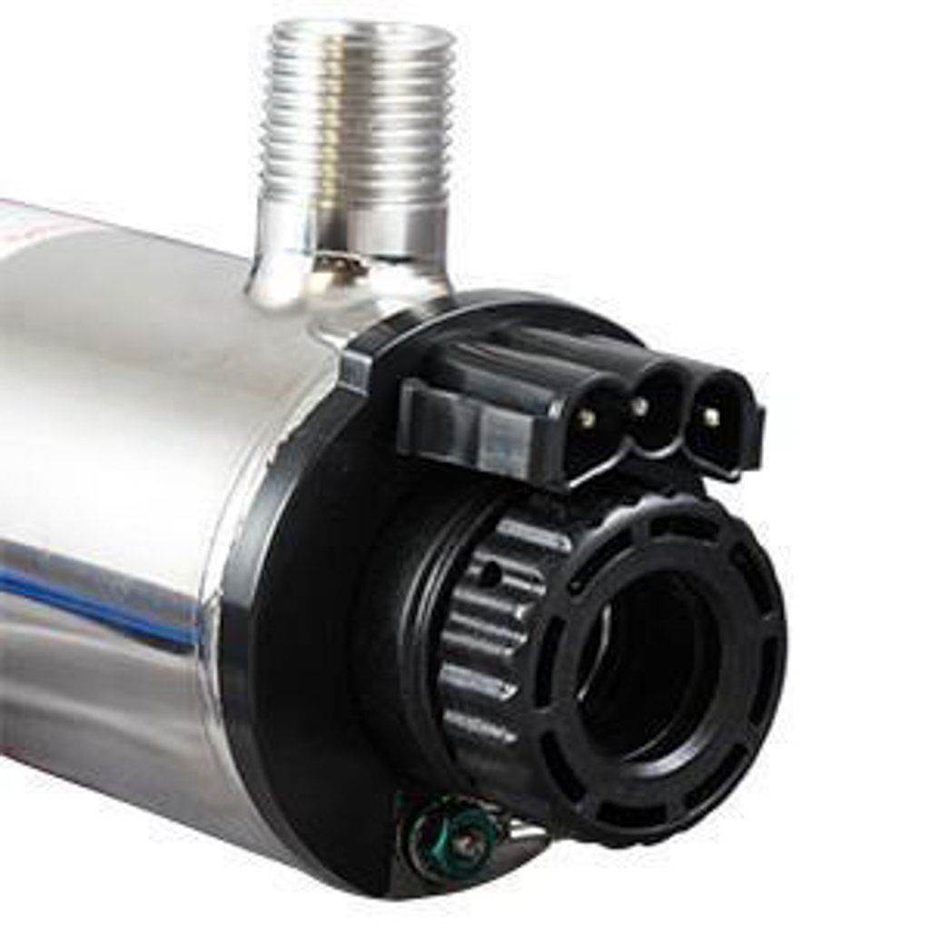 Ballast je s novějším typem konektoru k připojení UV zářiče, pokud máte původní starý typ, vůbec to nevadí, jde to velmi jednoduše nahradit. Je potřeba uzavřít přívod vody, odpustit tlak, vyšroubovat plastovou matku na straně kde je vstup pro UV zářivku, pod tuto matku vložíte nový typ konektoru jako na obrázku, zašroubujete a utáhnete zpět matku a je hotovo, na nový konektor lehce zacvaknete druhou část konektoru s UV zářivkou.