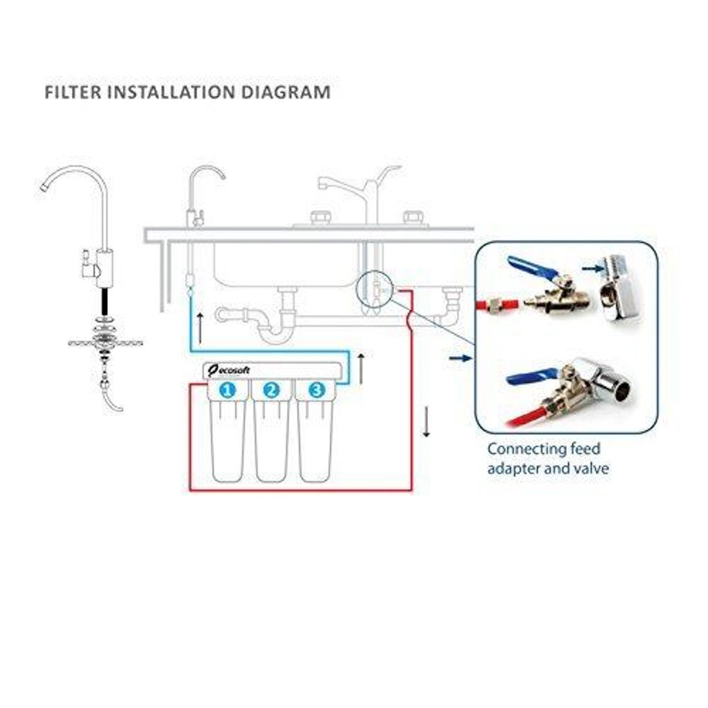 Filtr se instaluje většinou do kuchyňské linky pod dřez, upravená voda je vyvedena do samostatného kohoutku (chromové vodovodní baterie s keramickou kartuší), případně se dá stávající dřezová baterie vyměnit za trojcestnou baterii.