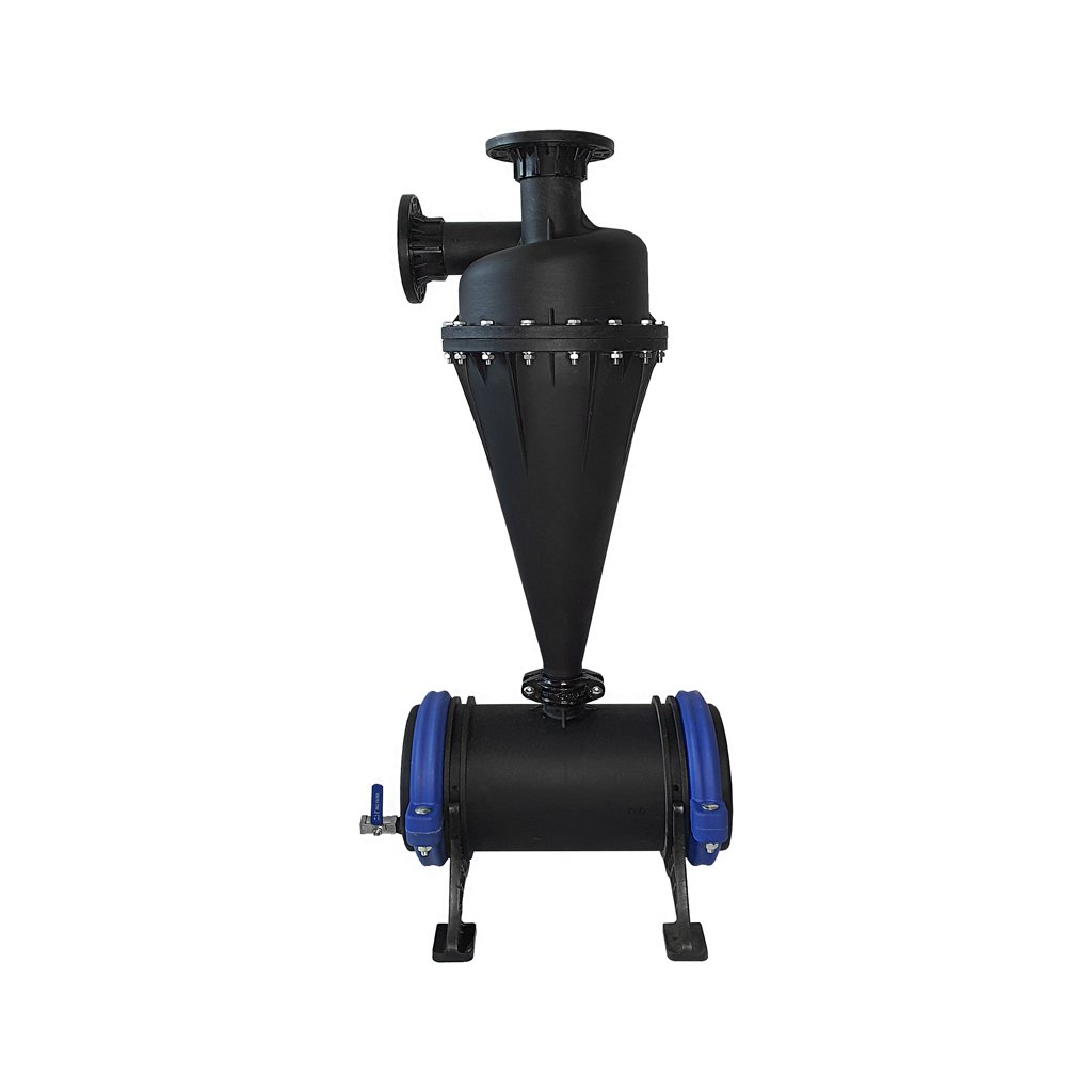 Separátor písku HydroCyklon 3" pomocí centrifugální síly usazuje písek do spodní části nádrže a takovým způsobem dokáže vyfiltrovat velké množství písku z vody. Nádrž lze jednoduše vyprázdnit přes vypouštěcí kohoutek.