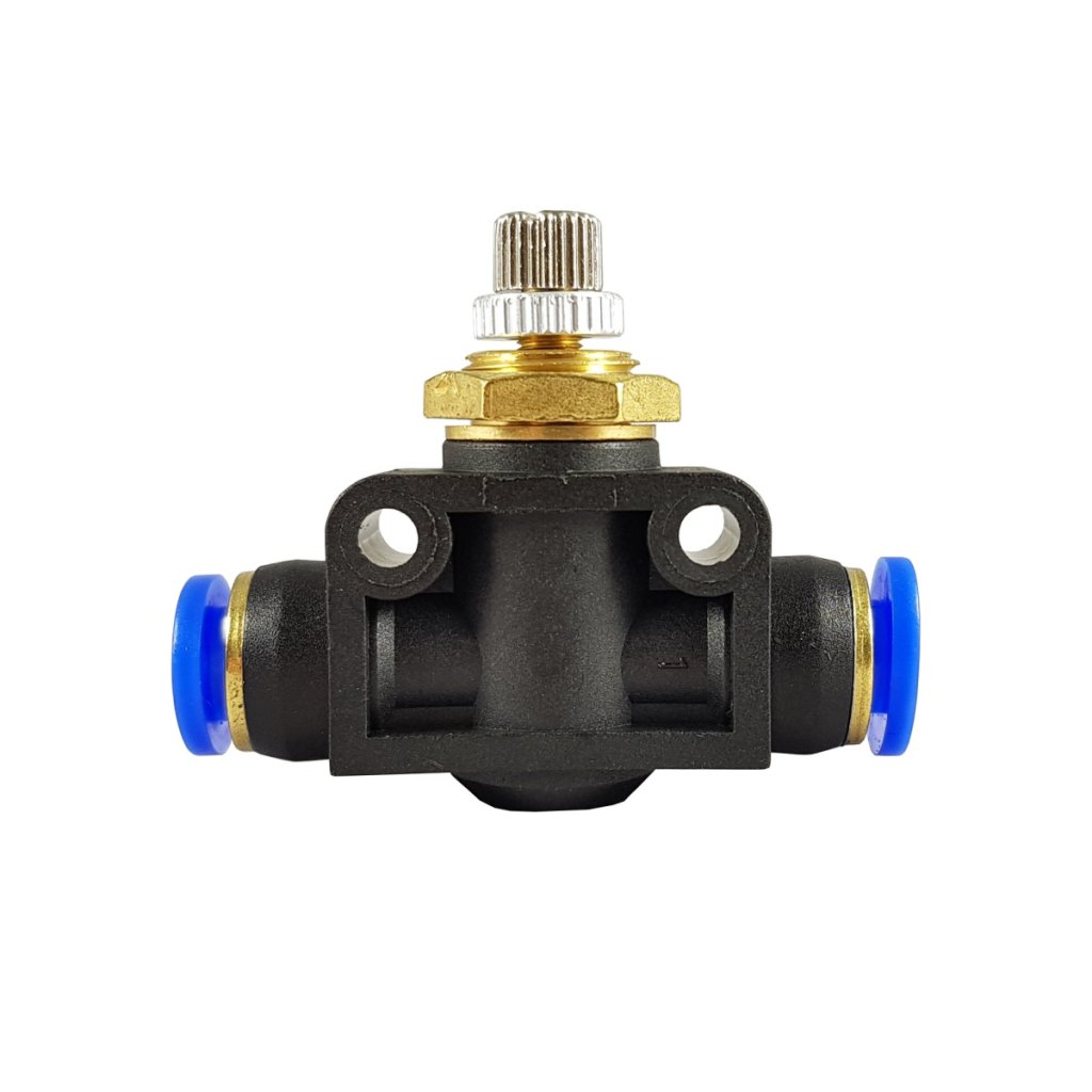 Jehlový ventil s 1/4" rychlospojovacím připojením pro přesnou regulaci průtoku pro reverzní osmózy, nanofiltry, vhodné i pro vzduch, CO2 apod.