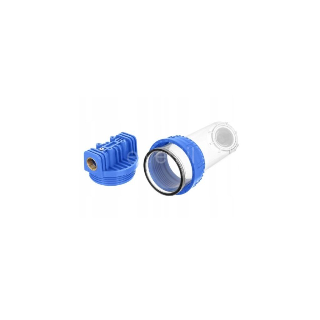 Prázdný samotný průhledný korpus k třídílnému filtru 10"x2,5" s připojovacími závity 3/4" nebo 1".