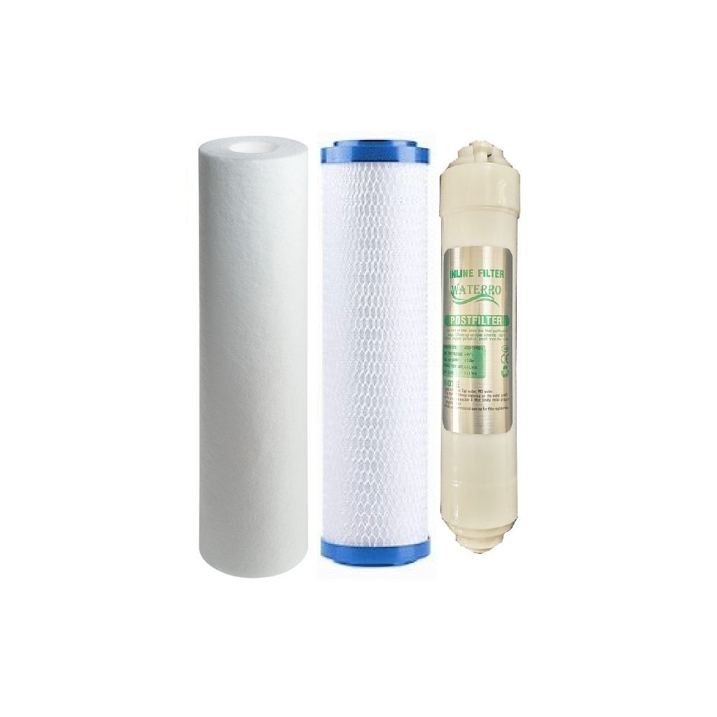 Sada filtrů k reverzní osmóze, sada se hodí pro většinu typů osmóz prodávaných pod různými názvy a označením od různých prodejců.